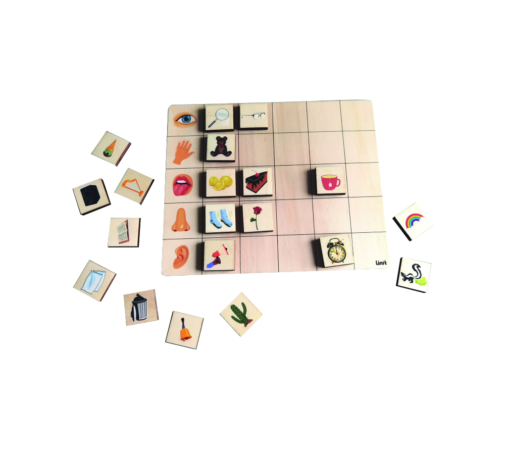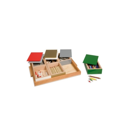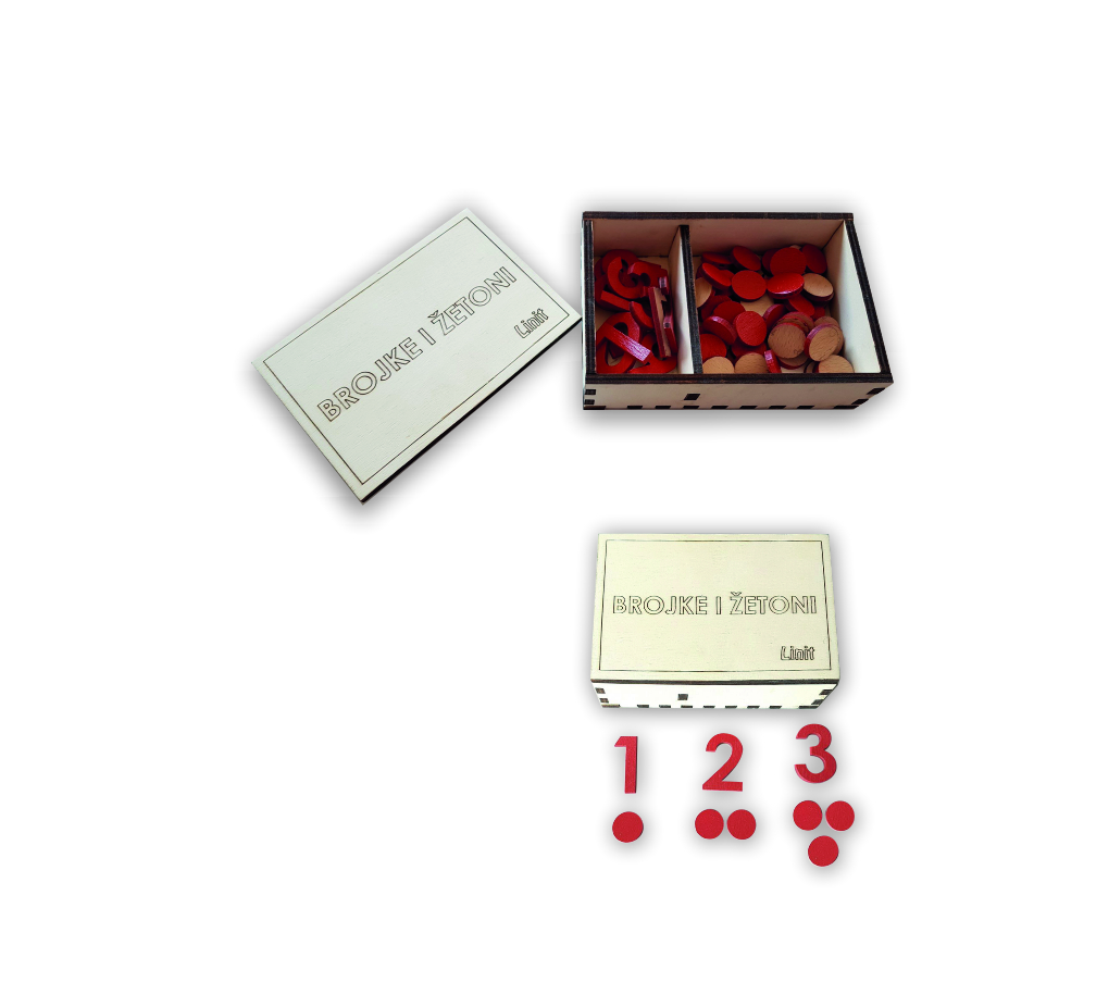 Montessori materijal se sastoji od drvene kutije s dva pretinca. U jednom se nalaze znamenke od 0-9, a u drugom crveni žetoni. Brojevi sa žetonima omogućuje djeci da shvate kako se svaki broj sastoji od određene količine, da uoče slijed brojeva i da uoče od koliko zasebnih jedinica je sačinjen određen broj. Pomoću brojeva i žetona djeca mogu usvojiti parne i neparne brojeve, ali isto tako radi se podloga za dijeljenje brojeva.