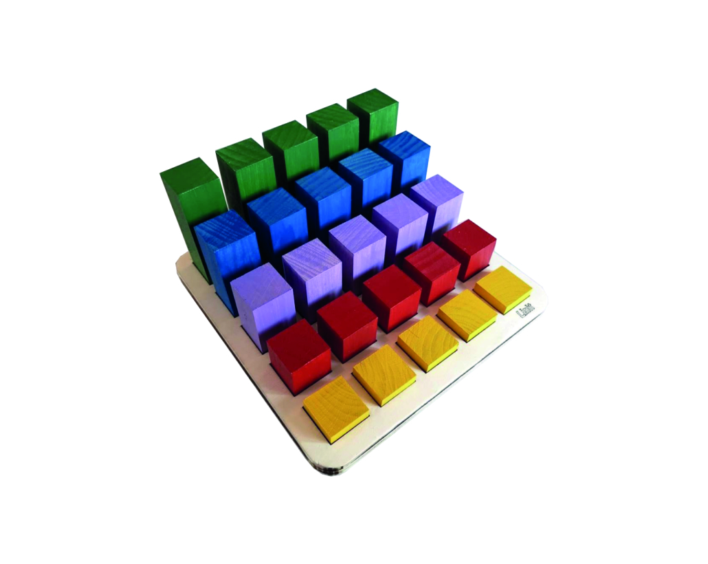 – Kao matematičko didaktičko pomagalo: niz od 5 kocaka iste boje je u određenom odnosu naspram niza druge boje. Dijete uči kroz igru odnose među veličinama, skupove, mjere, zbrajanje i oduzimanje, pa čak i množenje i dijeljenje!