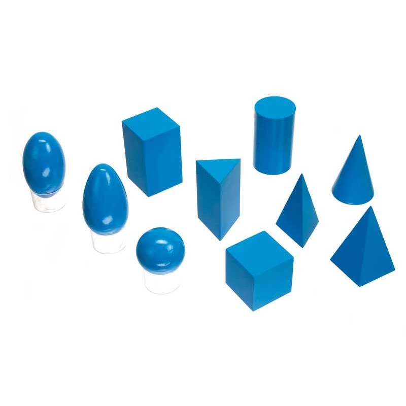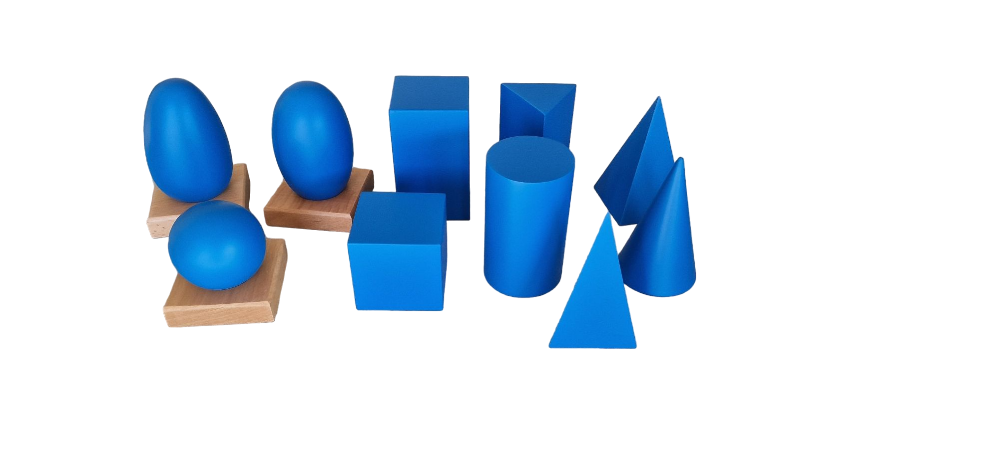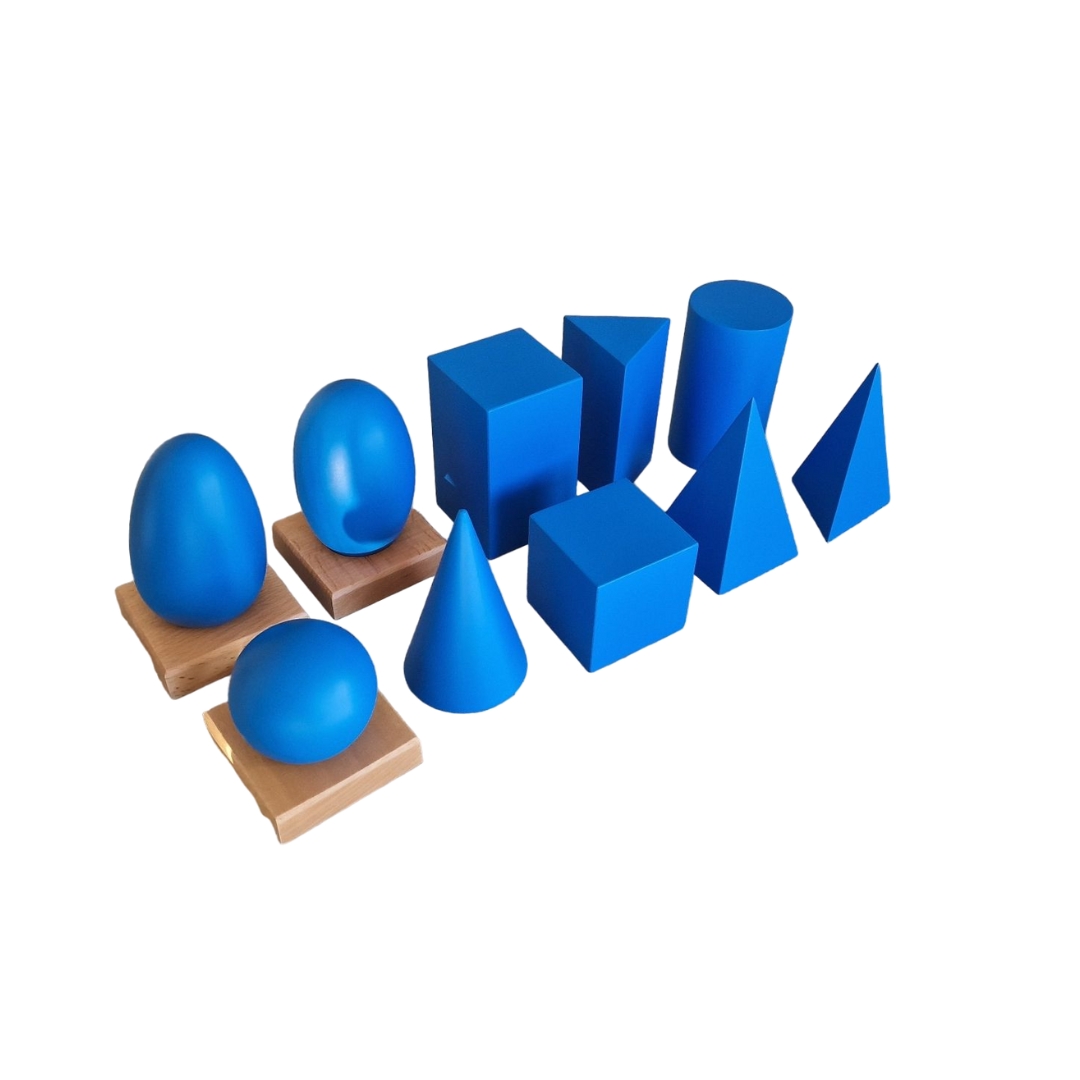 Komplet od 10 različitih geometrijskih tijela plus 3 drvena stalka.