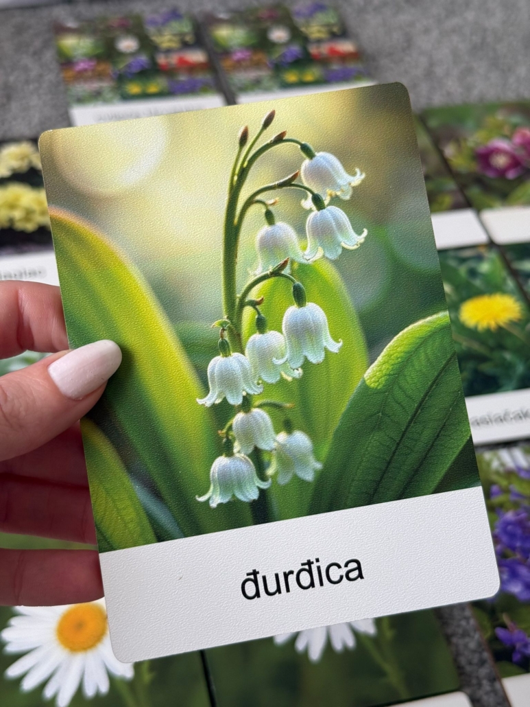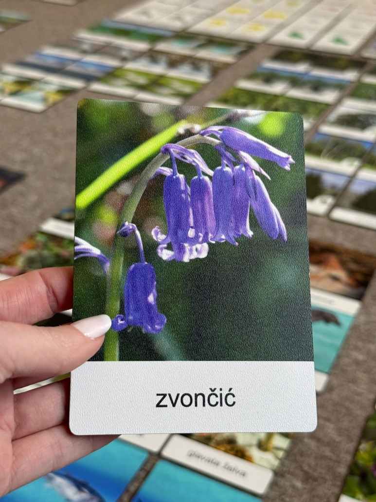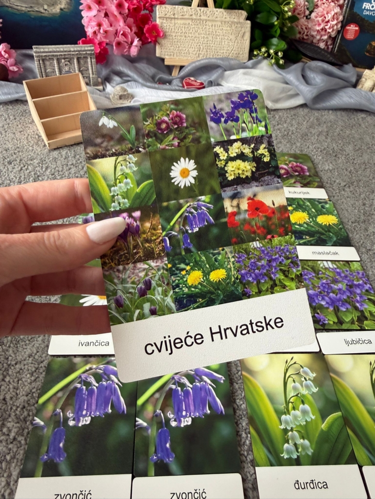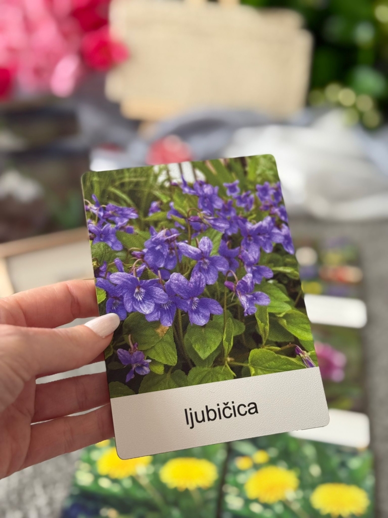 Set od 13 kartica izrađen od drva s fotografijma najzastupljenijih vrsta samoniklog cvijeća u Hrvatskoj. Set je osmišljen da dijete lakše upozna vrste cvijeća.