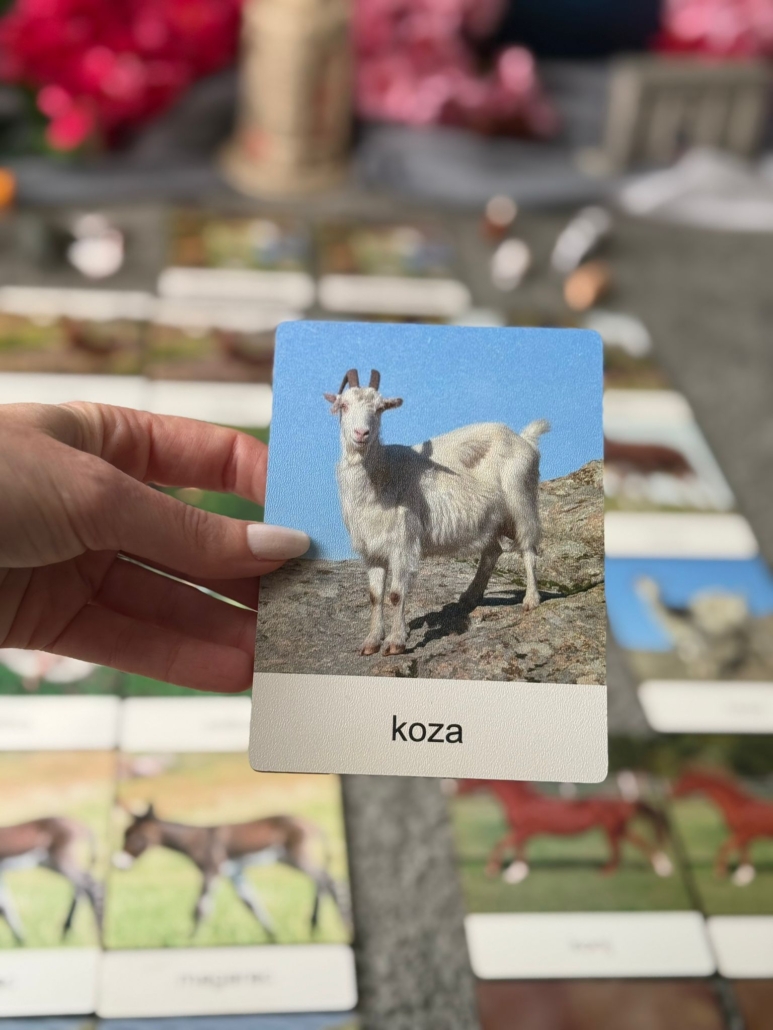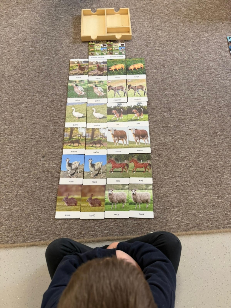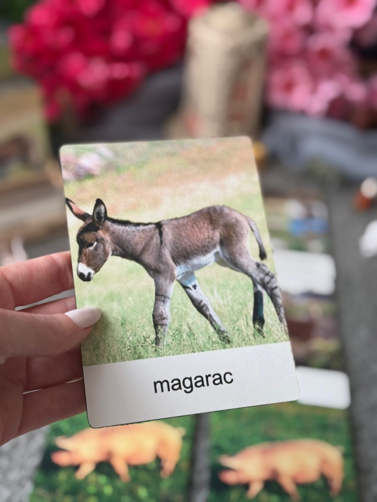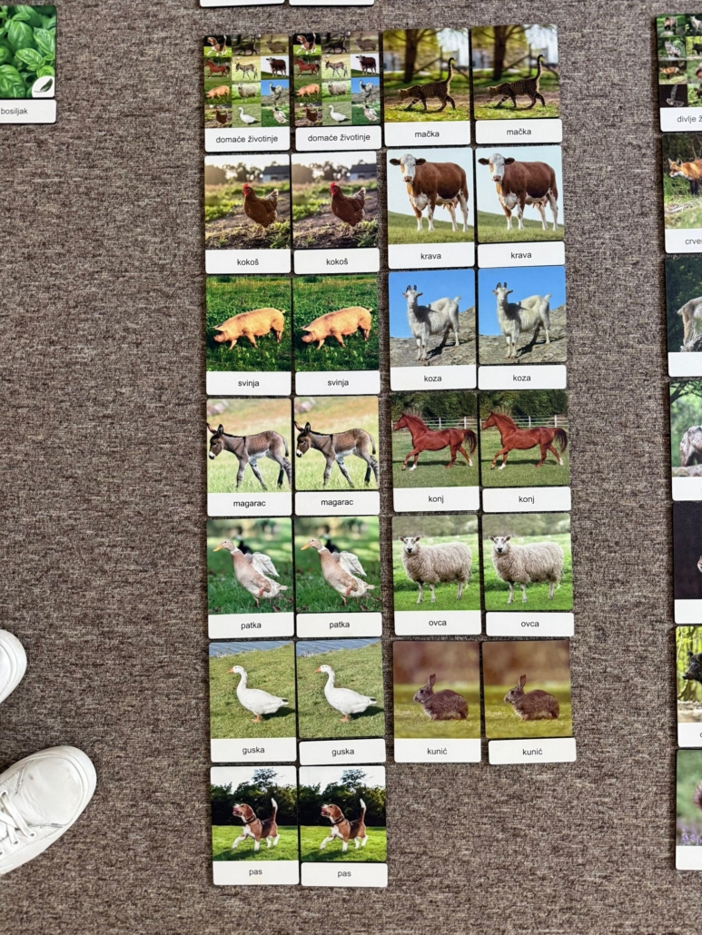 Set od 13 kartica izrađen od drva s realnim fotografijama domaćih životinja. Set je osmišljen da dijete lakše upozna vrste domaćih životinja koje obitavaju na području Hrvatske.