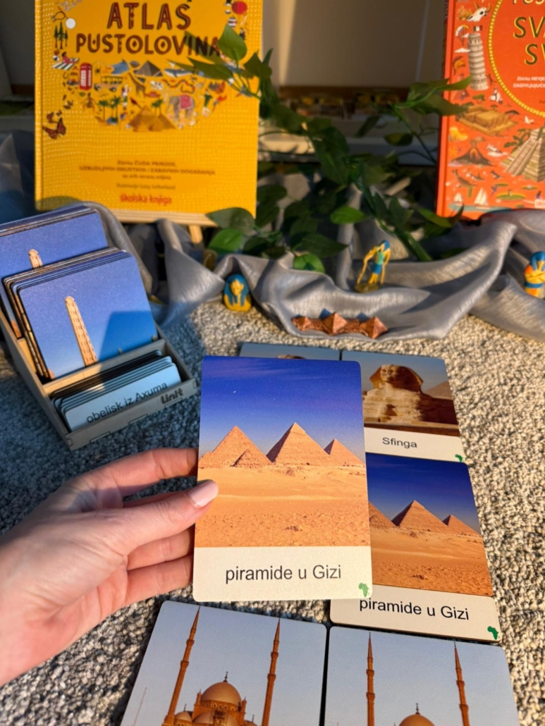 Set kartica izrađen od drva sa slikama najpoznatijih građevina u Africi. Set je osmišljen da dijete lakše upozna građevine na području Afrike.