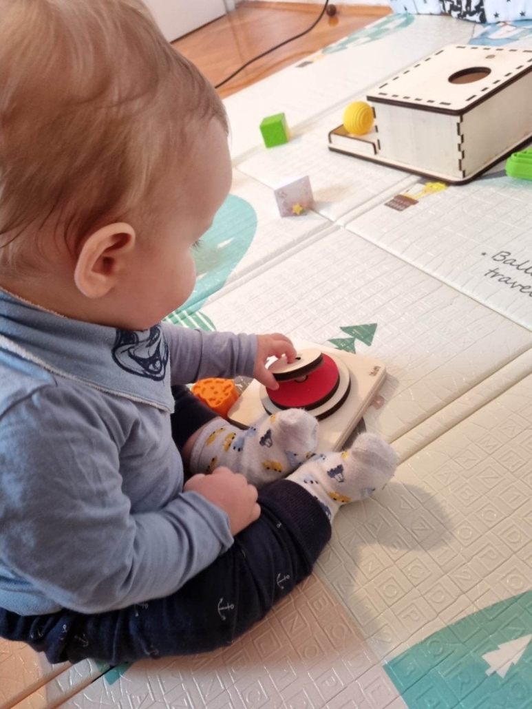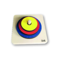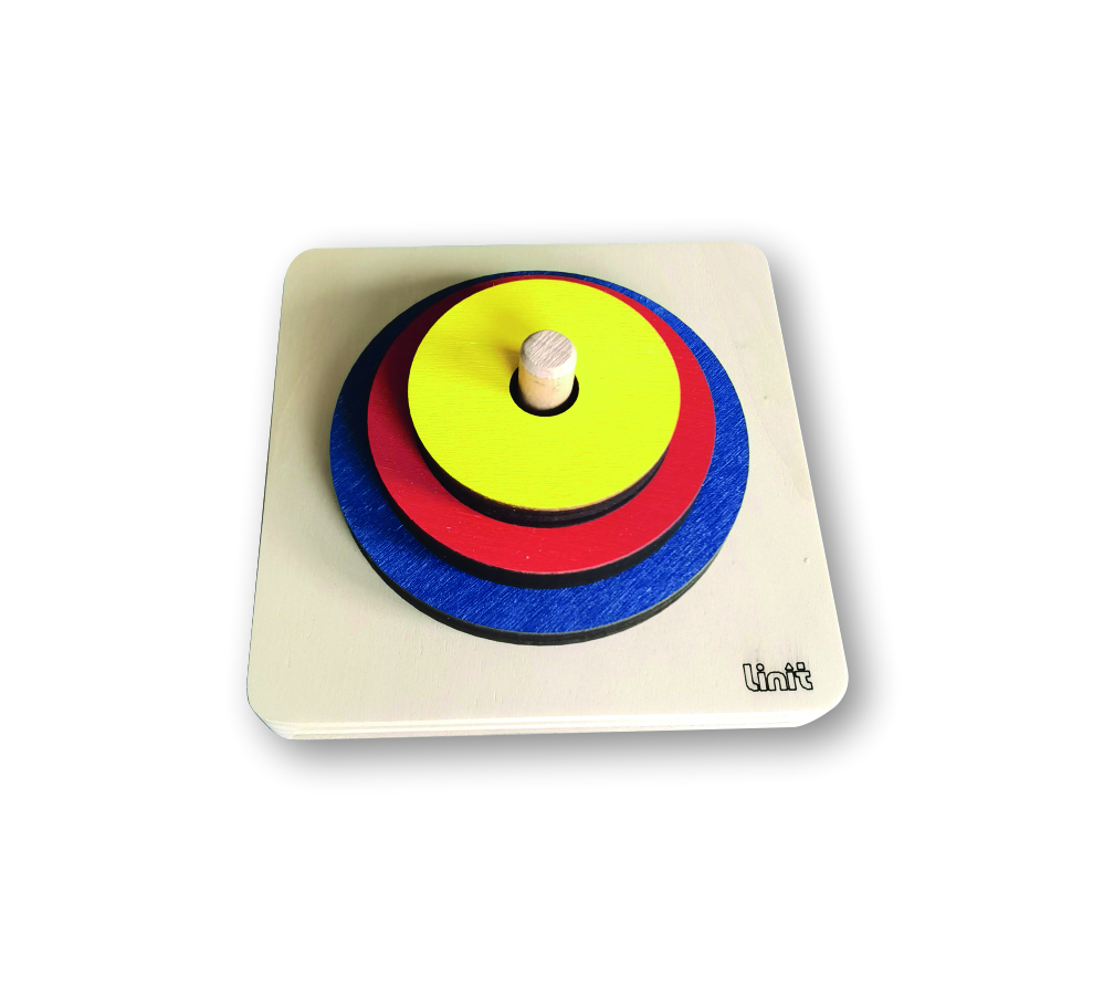 Drveni krugovi su obojani u osnovne boje pa je igračka izvrsna prilika za učenje osnovnih boja, imenovanje i prepoznavanje.