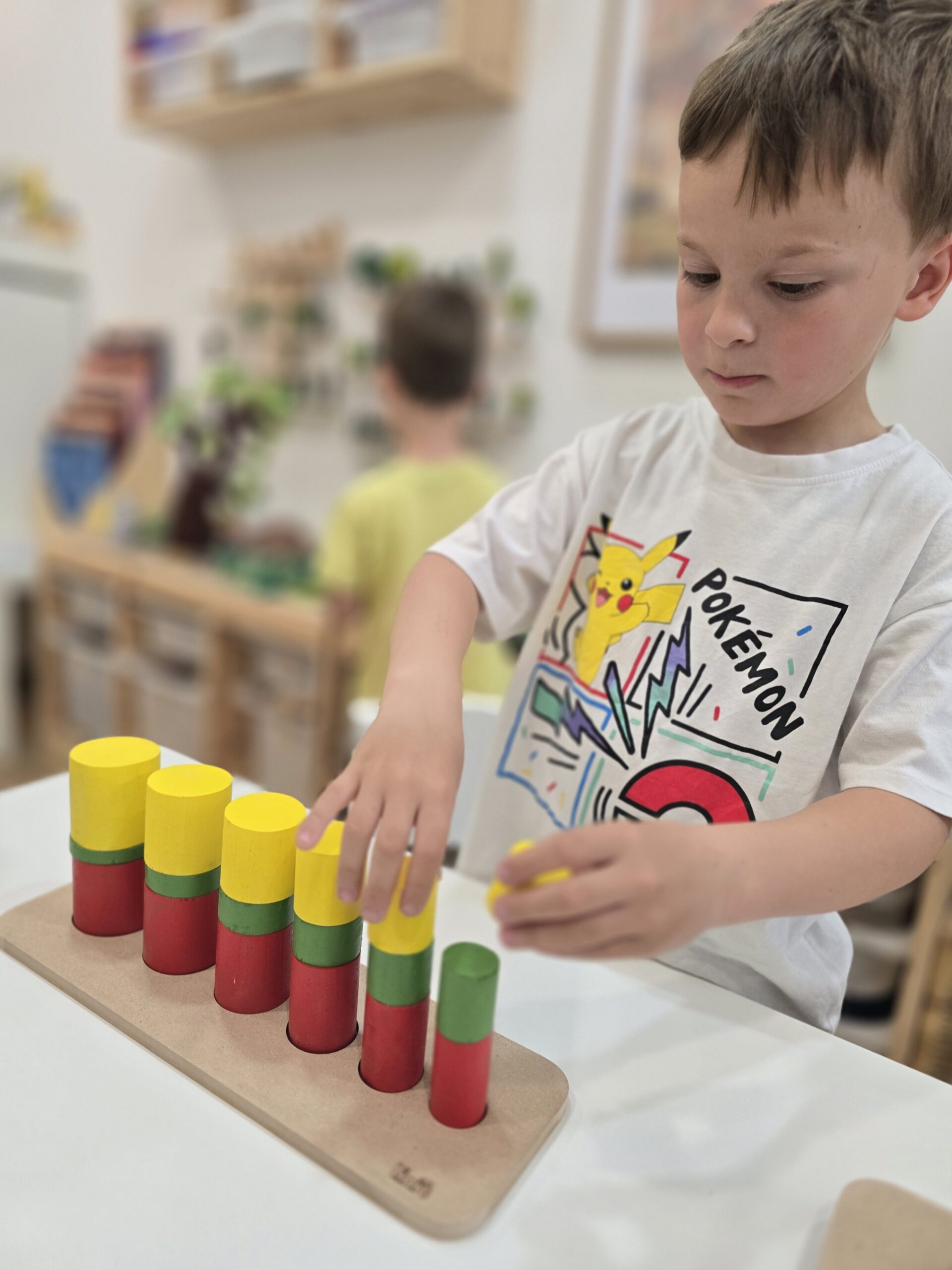 - Preciznost pokreta – dijete mora pravilno umetnuti valjak, što potiče finu motoriku